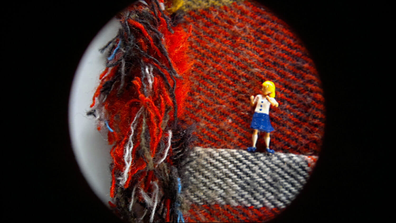 Dot measures just 9mm tall and was animated using a microscope and tweezers. In the miniature escape adventure, Dot runs away from unraveling thread, jumps over pins, and hitches a ride on the back of a bee.