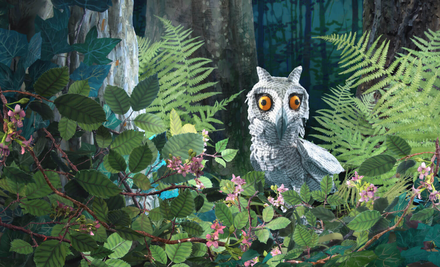 In a collage forest crafted out of newspaper, plants, and paper mâché, a newborn owl wakes up and explores the complicated world around him.