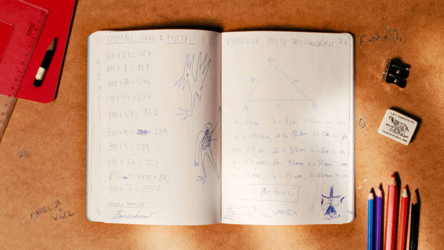 In the margins of a school notebook, a young boy explores his developing feelings for the girl sitting next to him.