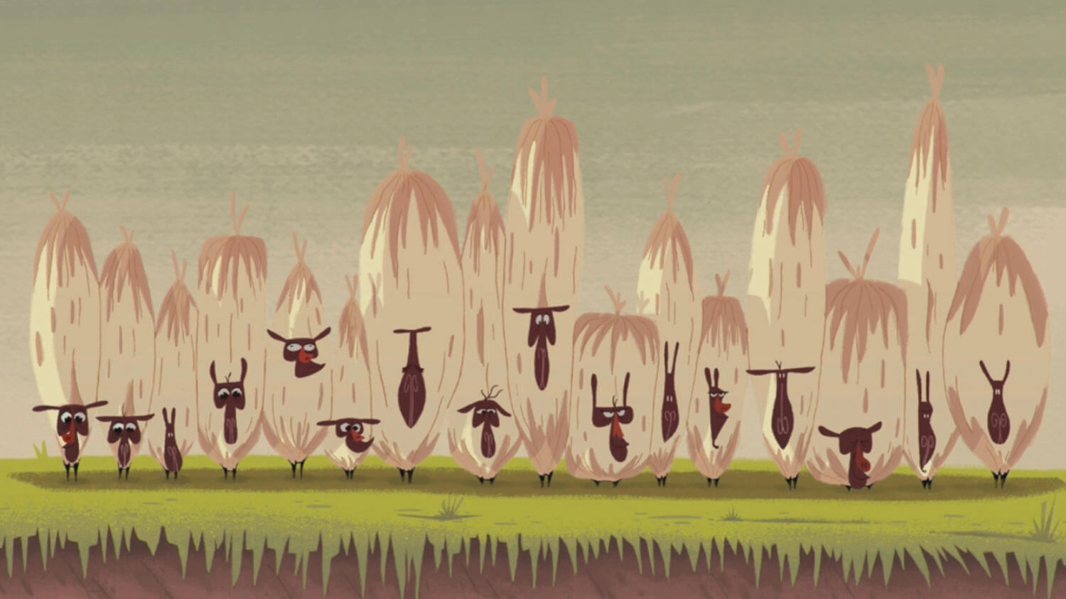 A wily sheep looks to dodge the shearing scissors in this homage to Saturday morning cartoons.