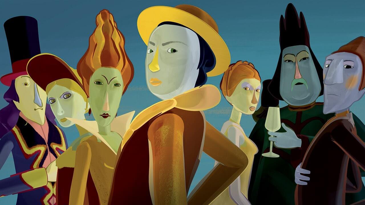 In this wry parable, a kingdom is divided into the three castes: the impeccably painted Alldunns who reside in a majestic palace; the Halfies who the Painter has left incomplete; and the untouchable Sketchies, simple charcoal outlines who are banished to the cursed forest. Chastised for her forbidden love for an Alldunn and shamed by her unadorned face, Halfie Claire runs away into the forest. Her beloved Ramo and best friend Lola journey after her, passing between the forbidden Death Flowers that guard the boundaries of the forest (in one of the film’s most radiantly gorgeous scenes), and arriving finally at the very edge of the painting — where they tumble through the canvas and into the Painter’s studio. The abandoned workspace is strewn with paintings, each containing its own animated world — and in a feast for both the eyes and imagination, they explore first one picture and then another, attempting to discover just what the Painter has in mind for all his creations.